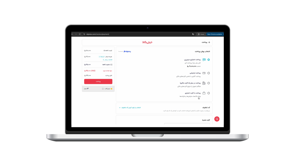 پس از ورود به وب سایت فروشگاه اینترنتی مورد نظر و انتخاب کالا، در مرحله انتخاب روش پرداخت بر روی گزینه مشاهده روش های دیگر سپس گزینه پرداخت با کارت اعتباری کلیک نمایید.